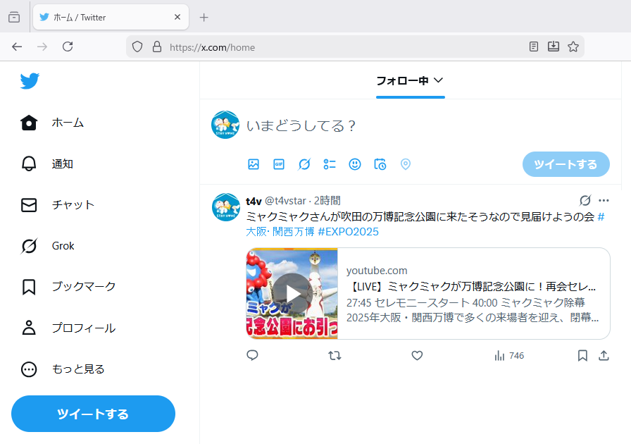 今日は何から…。twitterなんだけど、また「フォロー中」タブのタイムラインの表示が人気順に戻っていました。なんか1時間前と8時間前のポストが並んでて変だと思ったら。これ不定期で来るのかな。さすがにもう我慢して使うのも辞めるかと思って、前から存在は知っていたControl Panel for twitterの導入をしました。するとこんな感じになって、タイムラインが時刻順で固定になる以外にもUIが相当変わった。というかほぼtwitterになった。「ツイートする」もそうだし、青い鳥も久しぶりに見たな…。それもそうだけど、ページのタイトルが「ホーム/Twitter」になってる。え、ブラウザ拡張ってそんなことまでできるの?おすすめタブも消えたね。このへんはかなり細かく「出す」「出さない」を設定できるみたいなので、ベストなものにしていこう